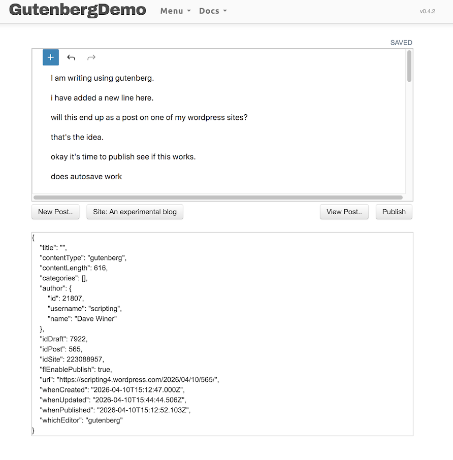 • Update: Here's a screen shot of the Gutenberg demo app.#