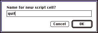 From the Table menu in Frontier, select the New ScriptÉ command. Enter the name for your script: