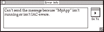 If you click on the Go To button, Frontier takes you to the place that the error occurred, the call to the appleEvent built-in.