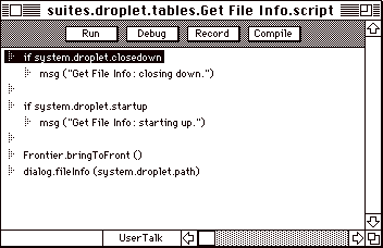 when you 2click on a droplet, Frontier displays a wptext window that explains