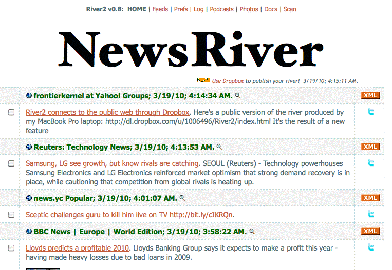 River2 is an app that runs in the OPML Editor that implements a River of News aggregator.