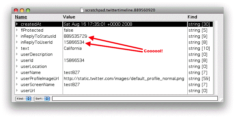 Now to try to get it working the other way -- when someone responds to a twit how do I pick it up. The threading info is in the timeline, cool, so now I need to upgrade my glue to pass it up the stack in the OPML Editor.