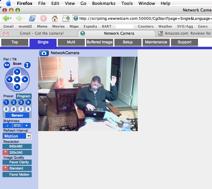 But I got my cool Panasonic webcam working with my Mac over the net. Thanks Chris! Hi Ponzi!